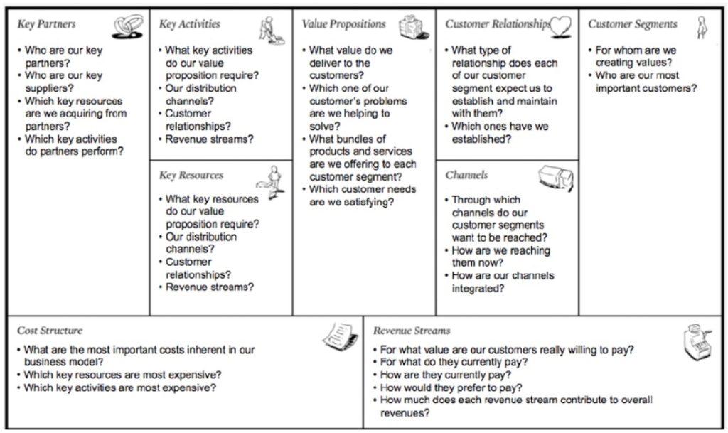 Un utile esercizio è fermarsi e rivedere le caratteristiche del nostro Business Model. Molto utile e didattico è lo schema del Canvas di Osterwalder. Tanto semplice ed intuitivo quanto sorprendente nei risultati spesso inaspettati.